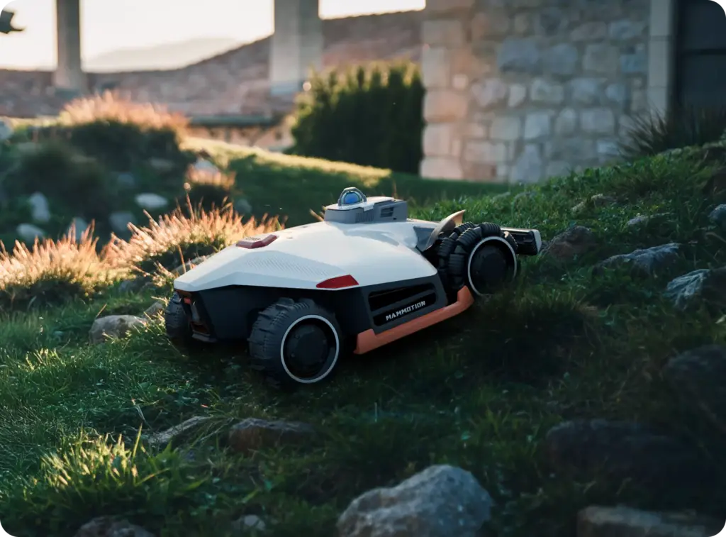 Dzięki temu robot może pracować autonomicznie i bezpiecznie nawet w skomplikowanych ogrodach.
