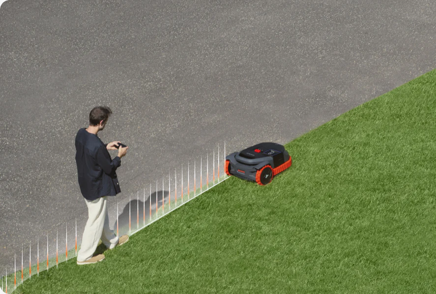 X330E nie wymaga instalacji przewodu ograniczającego. Granice trawnika, strefy koszenia oraz obszary wykluczone ustawia się cyfrowo w aplikacji Navimow. Każda zmiana układu ogrodu może zostać wprowadzona w kilka sekund – bez kopania i bez dodatkowych kosztów.