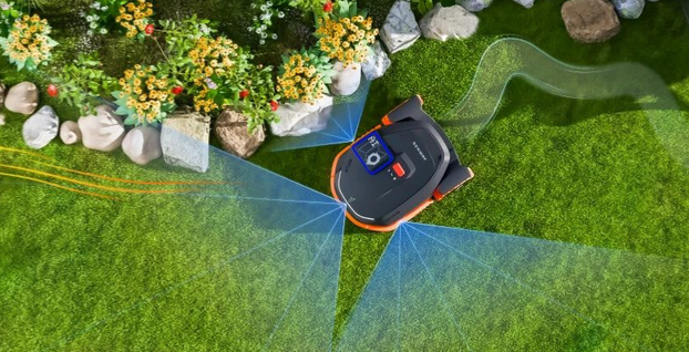 Dzięki temu robot utrzymuje stabilny tor jazdy nawet przy drzewach, budynkach czy w wąskich przejściach. Koszenie pozostaje precyzyjne również w trudnych warunkach.